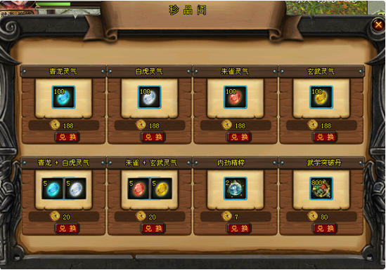 活动期间可前往京城(308,219)珍品阁 月牙儿NPC处,月牙儿为各位带来了紧缺道具---------四兽灵气和内劲精粹!使用江湖币即可兑换对应的道具。(此处消耗的江湖币将会获得对应的积分)
