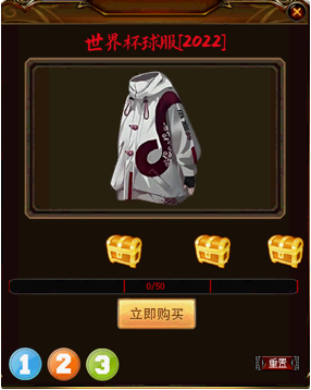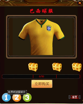 选择1、2、3可以变换当前要抽取的物品(赤血狼炎/巴西球服/世界杯球服[2022]);