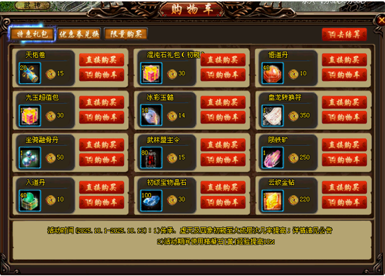 活动期间玩家可前往京城(273,258)林允NPC购买VIP卡卷(此处消耗的江湖币将会获得对应的积分)