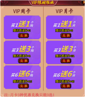 此次购买的vip全是卡卷形式,玩家可以根据自己需求随时开通;