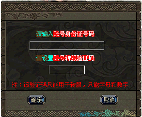 新增340级及以上角色转服验证码,维护后符合等级的玩家提交转服需要首次设置转服验证码,设置时需要验证账号目前绑定的身份证号码。设置后角色每次提交转服需验证正确后才能进入转服操作界面!若有疑问或设置失败请联系客服QQ:4002828666咨询反馈。